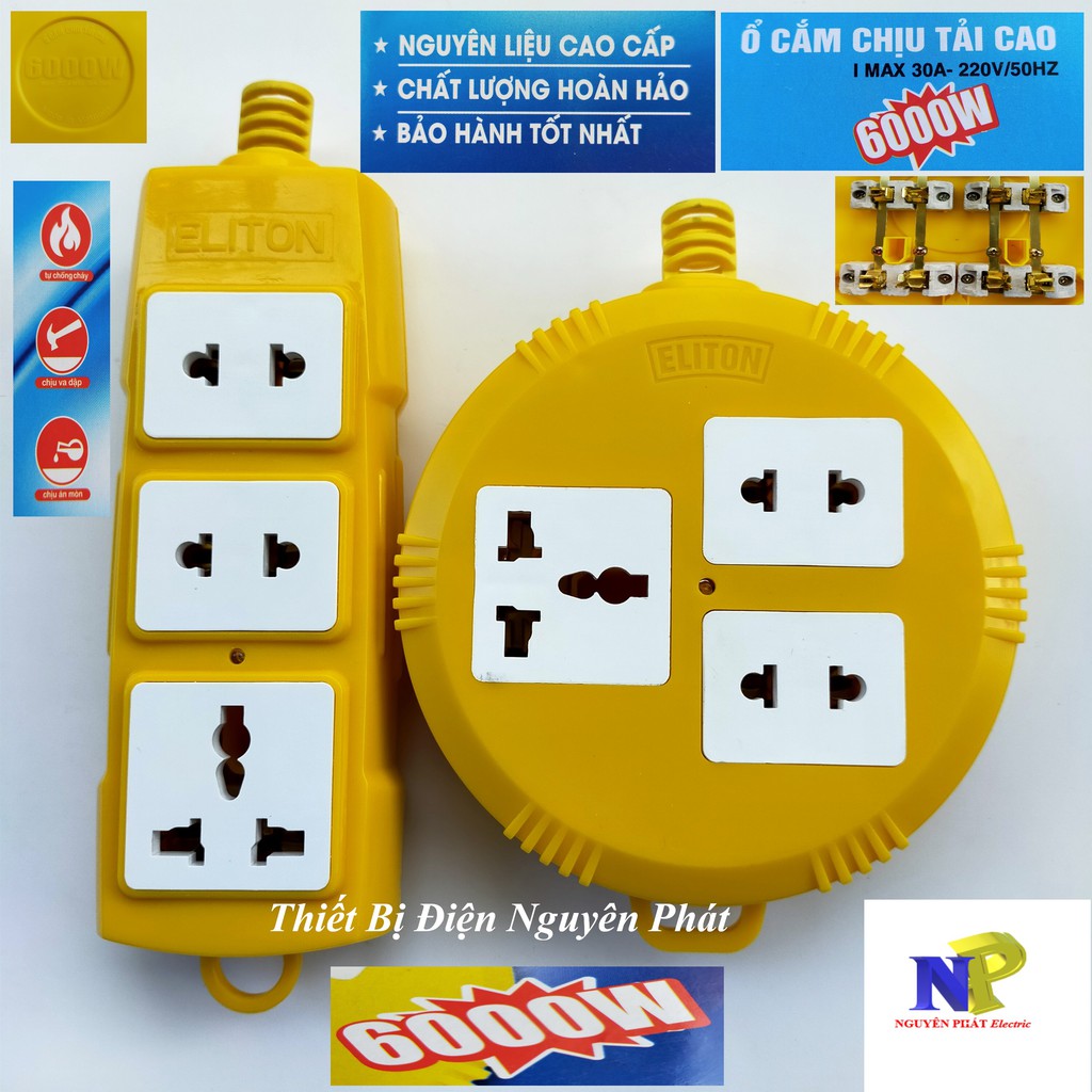 [ELITON] Ổ Cắm Điện 3 Ổ Có Đa Năng Siêu Chịu Tải (Có Lõi Sứ Cách Điện) Không Dây CS6000w👍 Ổ cắm điện 2,3,4,6 lỗ chịu tải 6000W Eliton ( không dây )