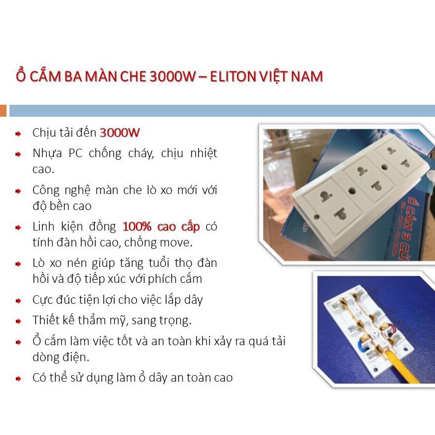 [ELITON] Ổ Cắm Điện 3 Ổ Có Màn Che Bảo Vệ CS3000wThông tin sản phẩm: