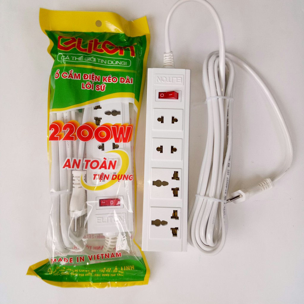 Thiết Bị Điện Gia Dụng > Mạch điện & Phụ tùng > Ổ cắm điện & Dây nối || [ELITON] Ổ Cắm Điện 4 Lổ Có Lõi Sứ Cao Cấp CS2200w Màu Trắng Dây 4mCòn hàng