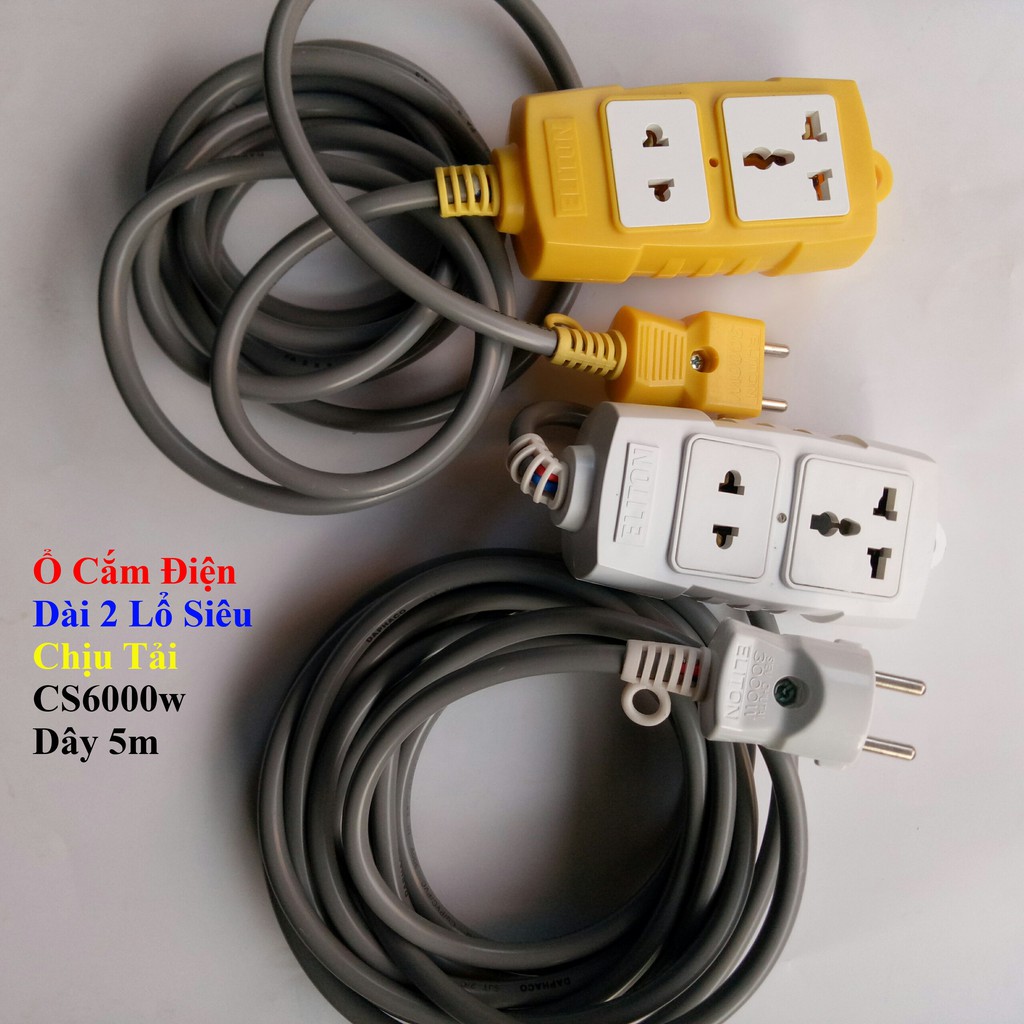 Thiết Bị Điện Gia Dụng > Mạch điện & Phụ tùng > Ổ cắm điện & Dây nối || [ELITON] Ổ Cắm Điện Dài 2 Lổ Siêu Chịu Tải CS6000w Dây 5mCòn hàng