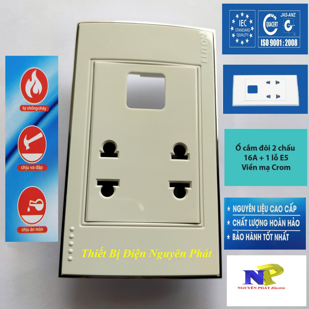Giới thiệu [ELITON] Ổ Cắm Đôi 2 Chấu 16A + 1 Lổ E5 Viền Mạ Crom - Hàng Cao Cấp