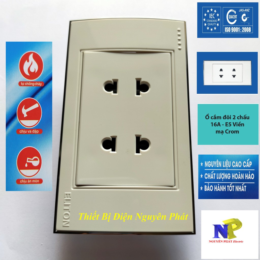 Giới thiệu [ELITON] Ổ Cắm Đôi 2 Chấu 16A E5 Viền Mạ Crom - Hàng Cao Cấp