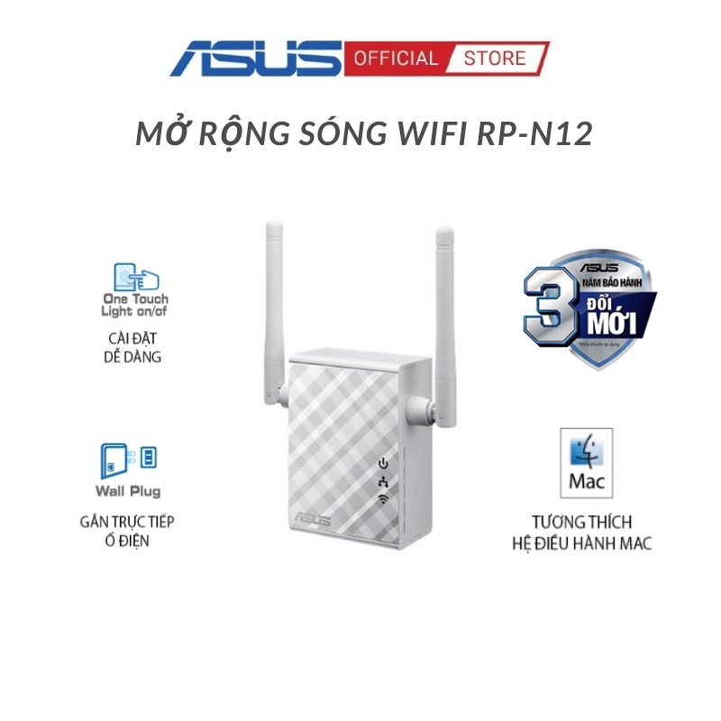 Máy tính & Laptop > Thiết Bị Mạng > Bộ Kích Wifi || [ELMALL7 giảm 7%]Bộ Mở Rộng Sóng Asus RP-N12 Repeater Chuẩn N300 2 Ăng-ten 2dBi Giúp Tăng Độ Phủ SóngCòn hàng