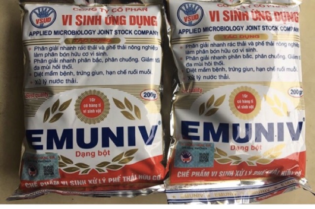 Giới thiệu EMUNIV 200 gr ☘️ - (dạng bột) Chế phẩm vi sinh ủ phân hữu cơ EM