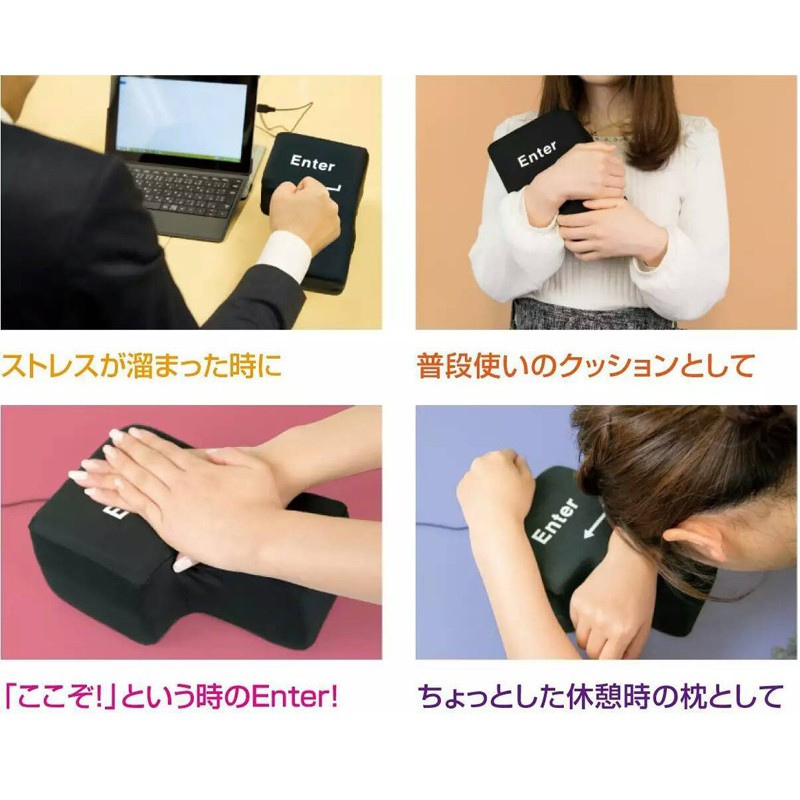 Nó được gọi là Gối cay cú . Nó rất dễ sử dụng. Bạn chỉ cần cắm nó vào máy tính của mình bằng USB và nó sẽ nhận ra đó là phím" Enter ". Nút này được làm bằng vật liệu xốp mềm, vì vậy khi bạn mệt mỏi, bạn có thể Sử dụng nó như một chiếc gối và ngủ trưa! Khi bạn cảm thấy căng thẳng, bạn có thể đập nó mà không lo phá hủy bàn phím của bạn!