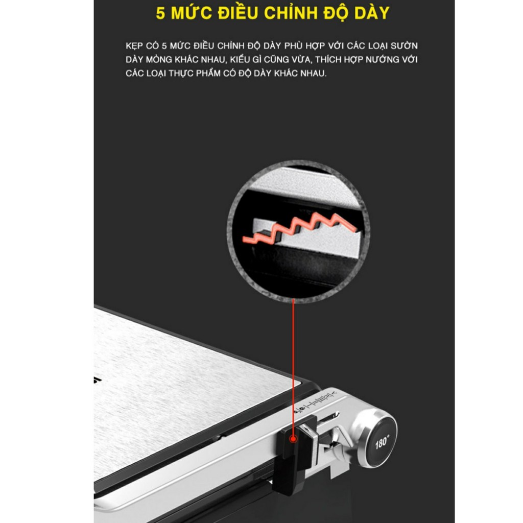 – Khay nướng có thể mở ra 180 độ, có thể sử dụng như 1 chiếc vỉ nướng điện thông thường với 2 bên khay nướng.
