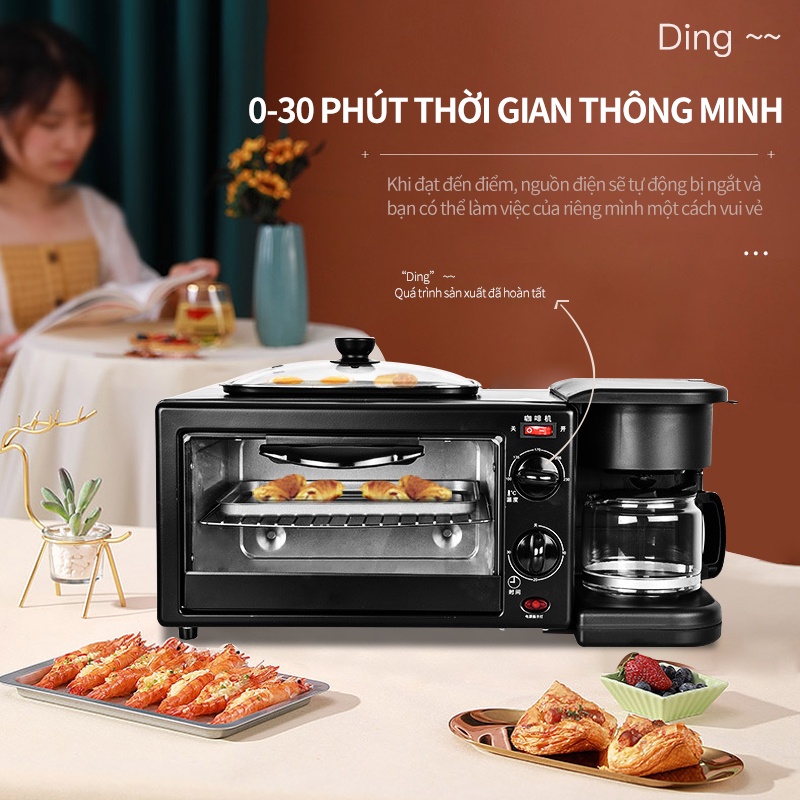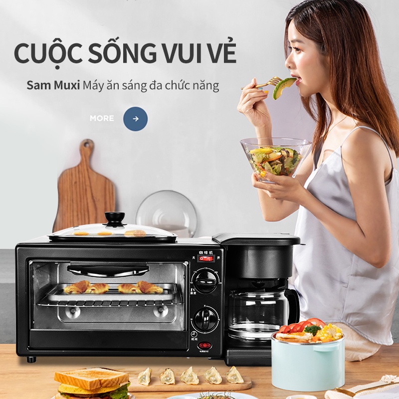 Bữa sáng nhanh, trà chiều nhàn nhã, đồ ăn nhẹ tinh tế, mọi thứ đều có, máy pha cà phê, lò nướng điện, chảo rán ba trong một.* Lò nướng chuyên nghiệp, làm nóng liên tục trong 60 phút, có thể sử dụng độc lập lò nướng và chảo rán; trang bị chảo chống dính, chảo xỉ có thể tháo rời, bảng điều khiển bằng thép không gỉ nâng cao chất lượng.