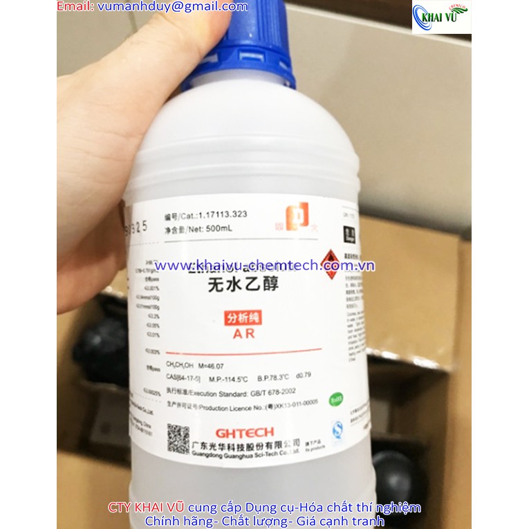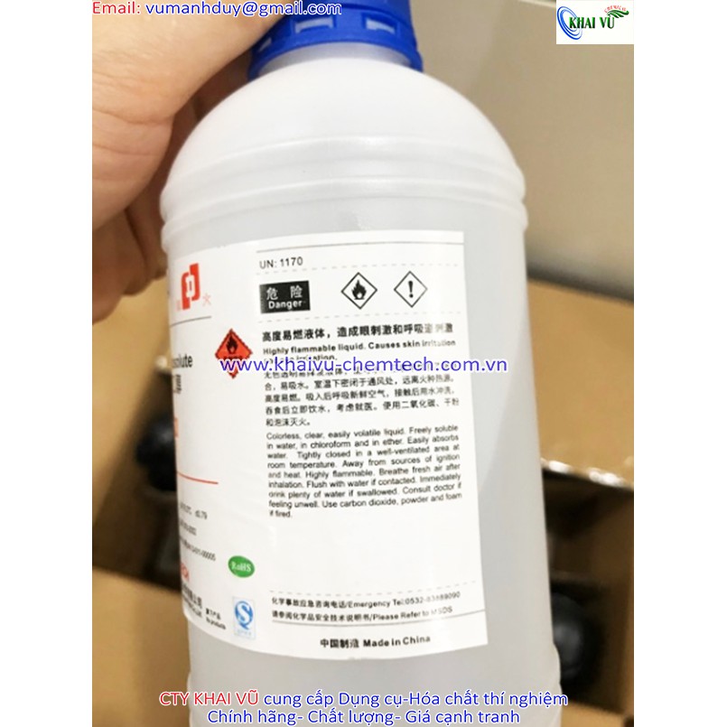Ethanol 99.7% C2H5OH cồn tinh khiết chai 500mlCông ty KHAI VŨ chuyên cung cấp Ethanol 99.7% C2H5OH cồn tinh khiết chai 500ml