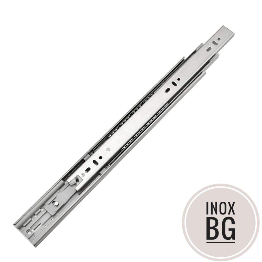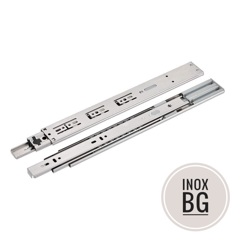 - Loại này khi gắn vào hộc tủ sẽ mở 100% chiều dài. Là sản phẩm được ứng dụng nhiều làm thanh ray trượt ngăn kéo tủ