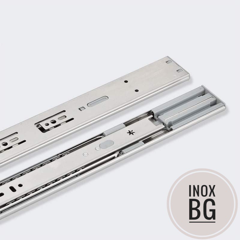 - Ray trượt bi 3 tầng gồm 3 thanh mảnh được xếp chồng lên nhau, liên kết bởi 1-2 lớp bi nhỏ , được bôi trơn bằng một tinh dầu đặc biêt nhằm chuyển động nhẹ nhàng.
