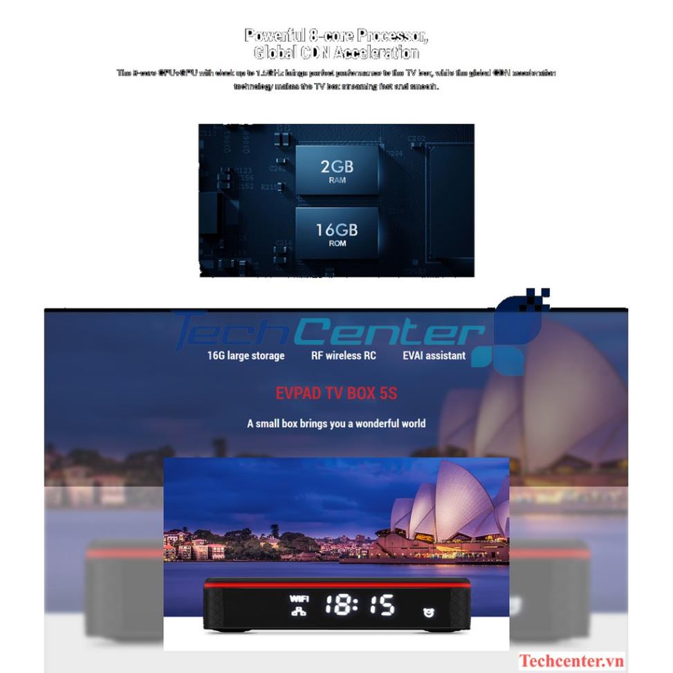 EVPAD 5S là mẫu sản phẩm mới nhất thuộc Seri thiết bị EVPad xem truyền hình nước ngoài qua giao thức IPTV . So với các thiết bị tiền nhiệm thì năm nay EVPAD 5S đã được nâng cấp rất nhiều về phần cứng để đáp ứng được các tiêu chuẩn mới về hình ảnh, âm thanh và tốc độ xử lý. (CPU lõi tứ Cortex A53 với GPU MALI-T720MP2, độ phân giải 6K, âm thanh vòm DOBLY & DTS, 2G DDR3 + 16G EMMC, WiFi băng tần kép, giải mã H.265, hệ thống EVOS 3.0, HDR 10 và HLG HDR.)
