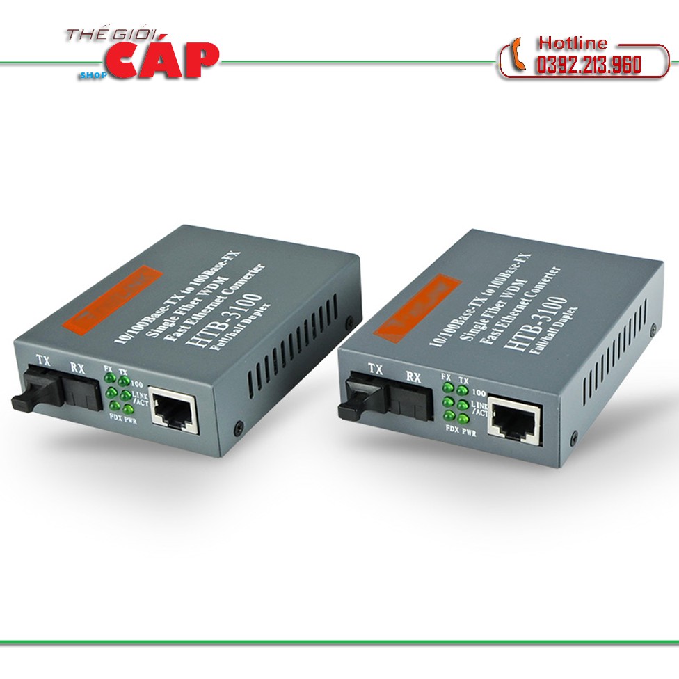 Loại kết nối cáp quang 1 sợi, NETLINK HTB-3100AB Single-Mode 25KM 10/100M Nguồn điện : 5V 1A Sử dụng 1 sợi kết nối khoảng cách 25Km Convert quang 1core netlink Ứng Dụng: Được ứng dụng rộng rãi trong thi công hệ thống mạng LAN, Internet, camera IP với khoảng cách xa. Sử dụng đấu nối đơn giản bằng đầu nối Nhanh " Fast connect"LƯU Ý: Màu và mẫu: sẽ giao ngẫu nhiên tuỳ vào từng đợt hàng và số lượng còn lại trong kho nên quý khách vui lòng inbox hỏi trước nếu mún lựa màu và mẫu.