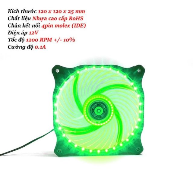 Máy tính & Laptop > Linh Kiện Máy Tính > Quạt và Tản Nhiệt || Fan case 12cm | fanled 33 bóng led xanh láCòn hàng