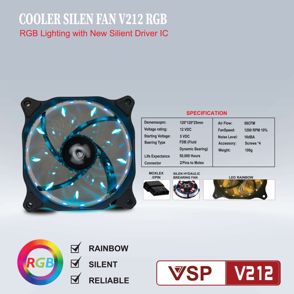 Giới thiệu Fan case 12cm VSP V212 Led RGB (Tự Chuyển màu)