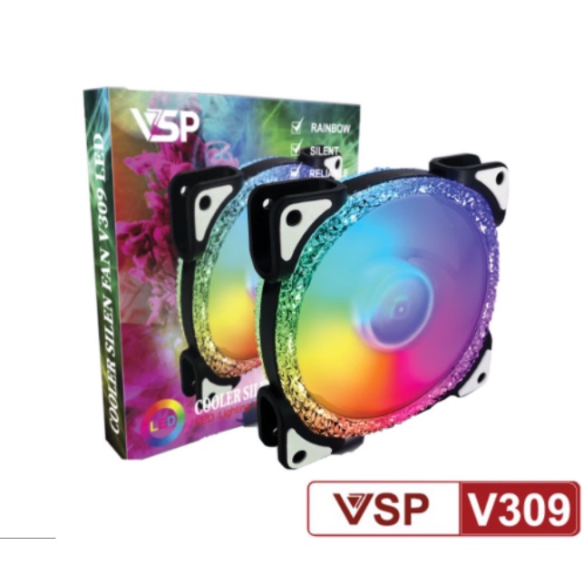 Máy tính & Laptop > Linh Kiện Máy Tính > Quạt và Tản Nhiệt || Fan case 12cm VSP V309 Led RainbowCòn hàng