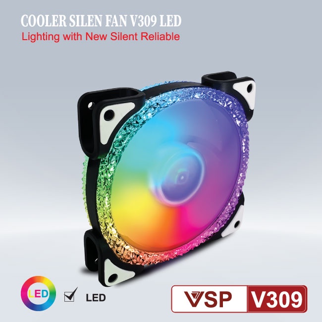 Fan Case 12cm VSP V309 LED RGB tự đổi màu - Chính hãng VSP
