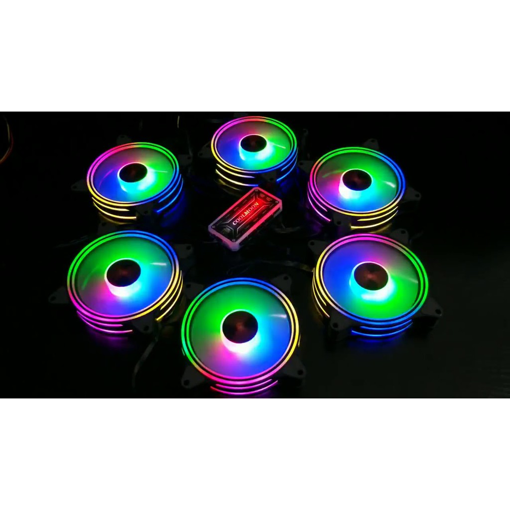 Máy tính & Laptop > Linh Kiện Máy Tính > Quạt và Tản Nhiệt || Fan Case Coolmoon M1 - Led RGB (Led tâm + Led viền) - Đồng bộ qua Hub CoolmoonCòn hàng