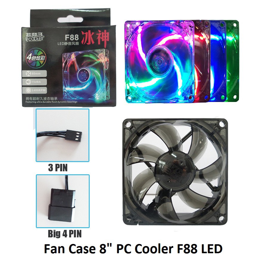 Fan cse quạt tản nhiệt thùng máy CPU 8 inch PC Cooler F88 cò đèn ledLàm mát thùng máy