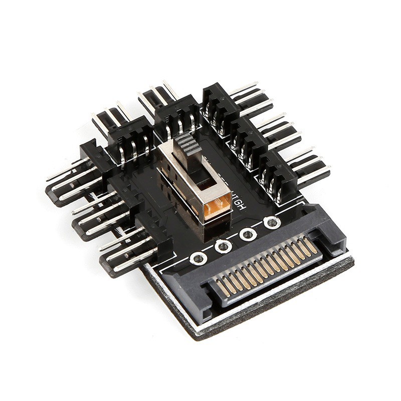 Fan Hub 8 cổng có switch tốc độ (2 mức Hi/Lo + off)- KHÔNG NHẬN TÍN HIỆU ĐIỀU TỐC TỪ MAINBOARD