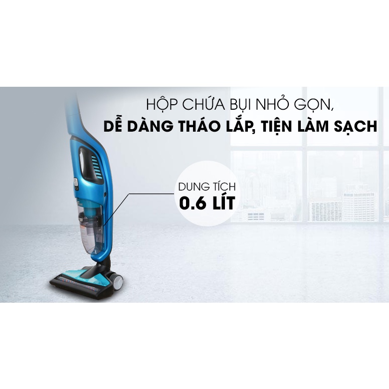 - Máy hút bụi không dây, có thể sử dụng liên tục trong 40 phút, sạc đầy năng lượng trong 5 tiếng đồng hồ