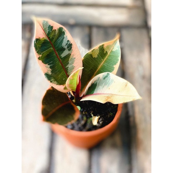 Cây Ficus Tineke Ruby (Cây Đa Cẩm Thạch Ruby) chậu đất nung size nhỏ