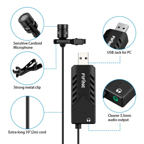 FIFINE K053 - HÀNG CHÍNH HÃNG - Mic thu âm cài áo có dây dành cho Máy tính cổng USB