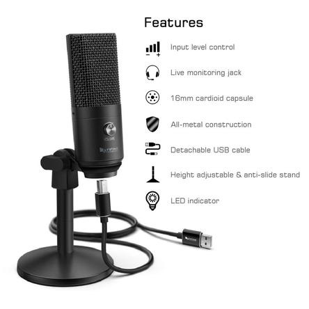 TÍNH NĂNG:◾ FIFINE K669 là loại micrô USB để bàn. Tương thích với Mac, Windows hoặc Play Station console cổng USB (không hoạt động với Xbox)