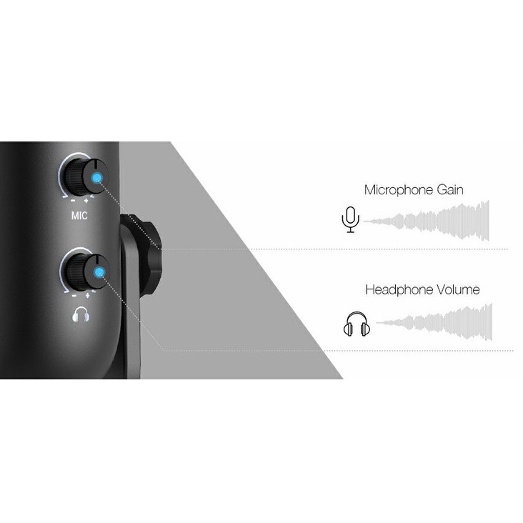 ◾ Đầu ra tai nghe stereo 3,5 mm của micrô để bàn có tính năng điều khiển âm lượng và cung cấp khả năng giám sát trực tiếp, không có độ trễ ở bất kỳ đâu, âm lượng có thể điều chỉnh đảm bảo chất lượng giám sát và sự tiện lợi.
