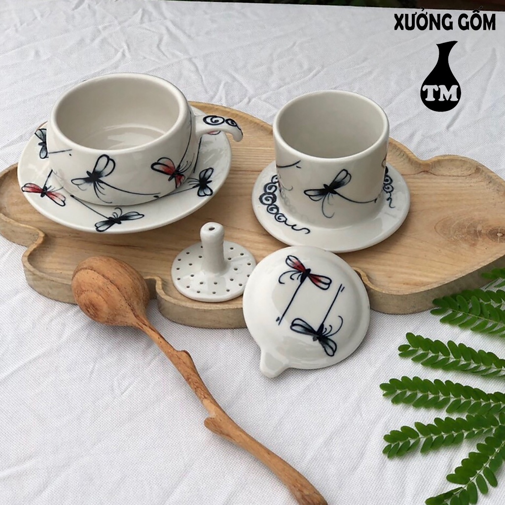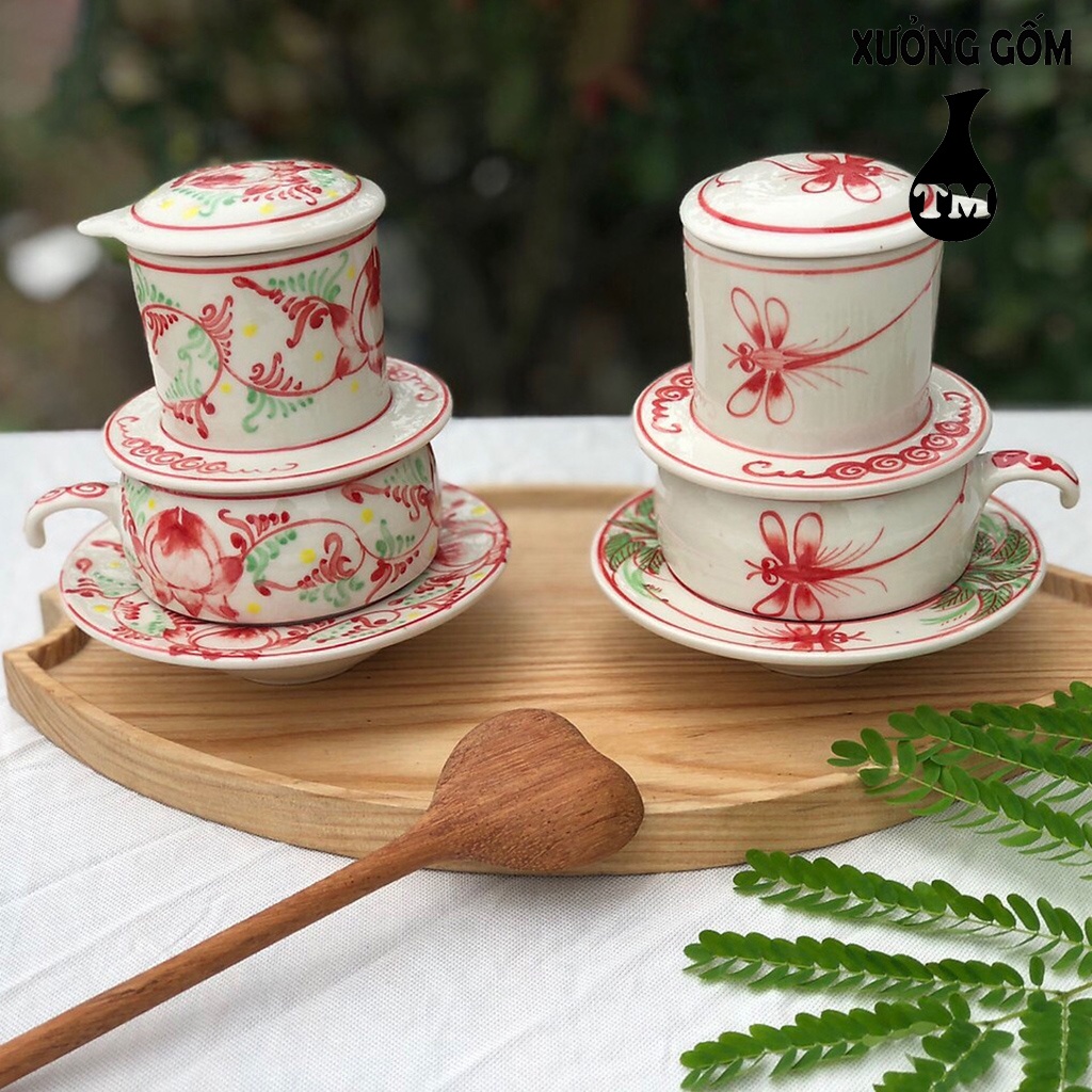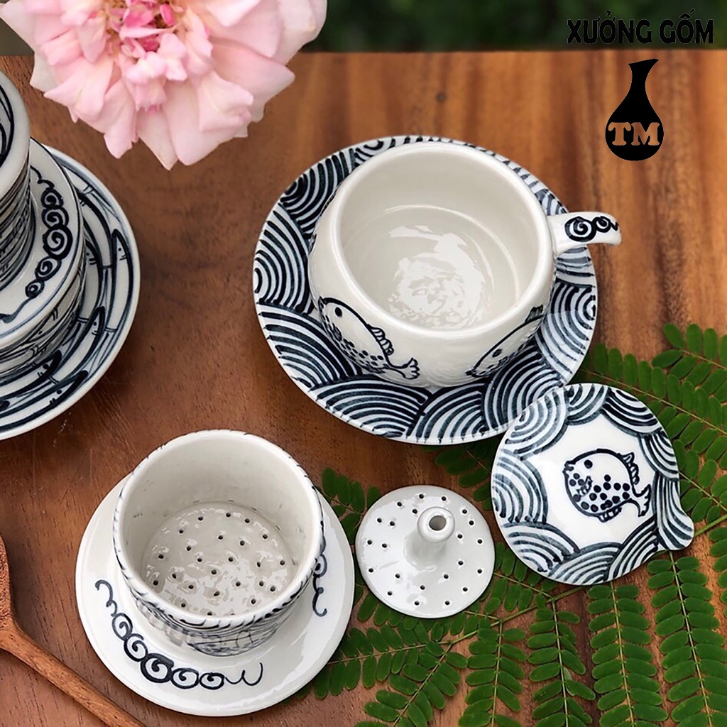 Bộ Fin Pha Cà Phê Xưởng Gốm TM Bát Tràng Họa Tiết Vẽ Tay Chất Liệu Gốm Sứ