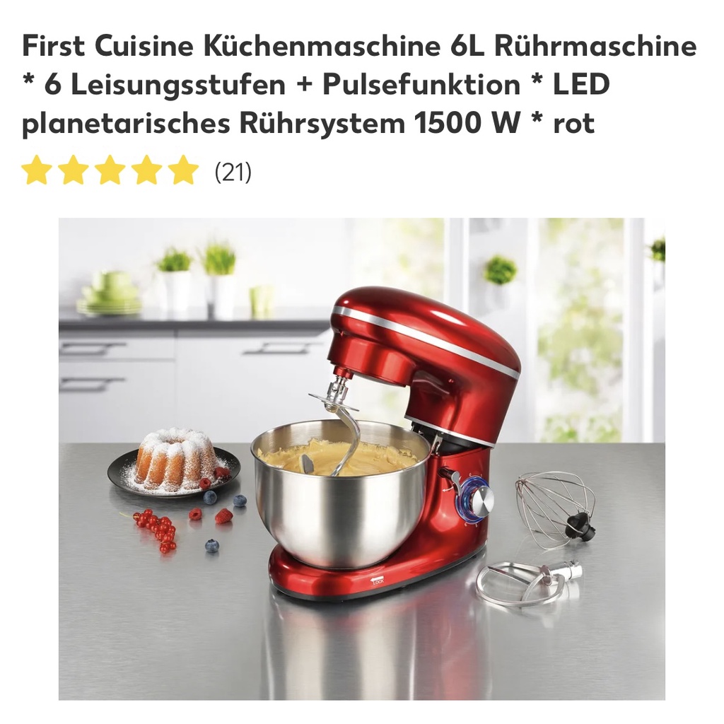 Máy trộn bột FIRST CUSINE 1500W đang sale 50% ở Đức. Được dân Đức đánh giá 5*****Máy mạnh mẽ 1500w với sáu cấp tốc độ và chức năng turbo.