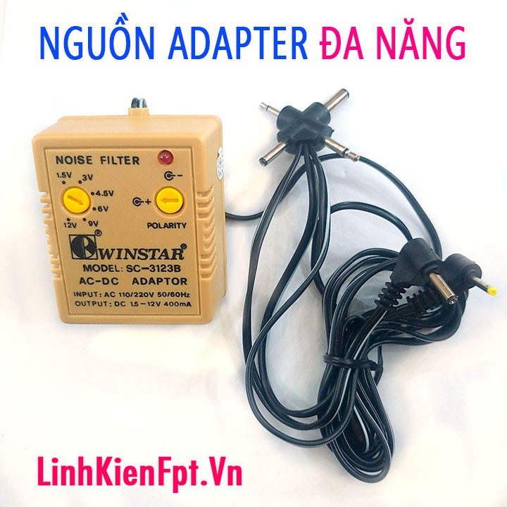 + Điện áp ra 6 đầu : 3V - 4.5V - 6V - 7.5V - 9V - 12V DC