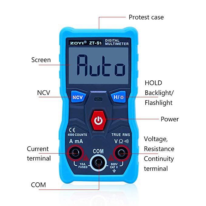 Sản phẩm bao gồm : 1 ĐỒNG HỒ, 1 CẶP QUE ĐO, 2 VIÊN PIN AAA 1.5V.