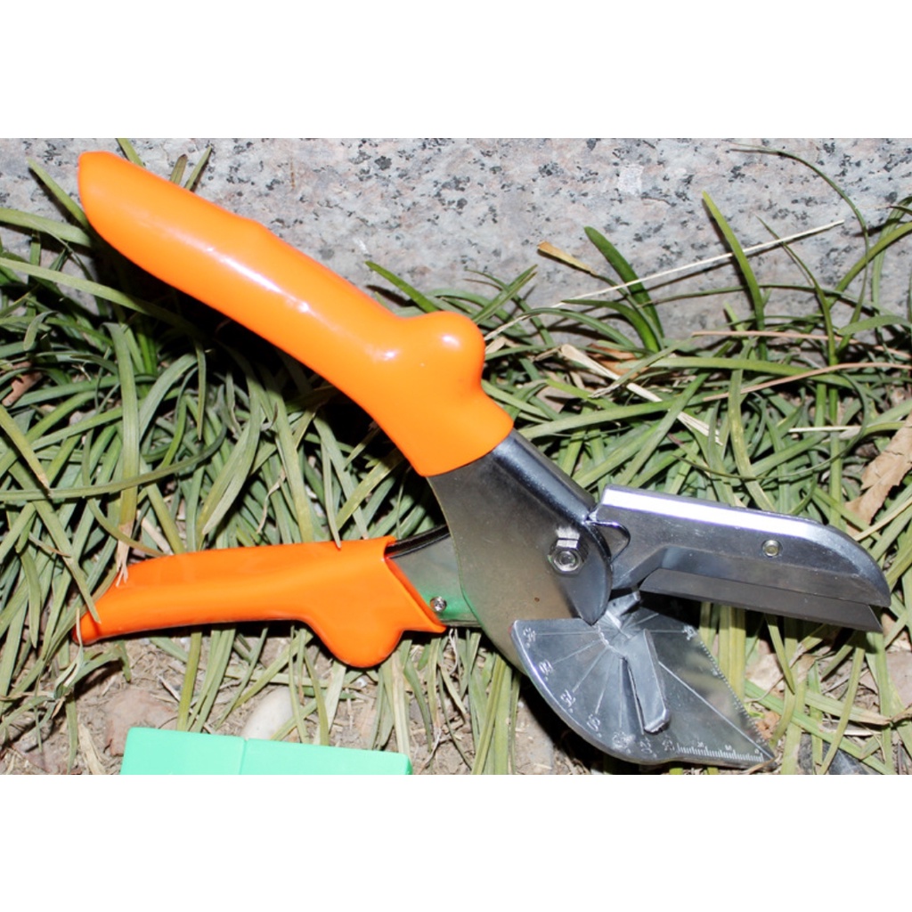 Kéo cắt góc điều chỉnh cho phép cắt ghép máng luồng dây điện, ống gel,nhựa PVC với các góc cắt từ 45° đến 135° .Kéo cắt góc được làm từ hợp kim chống gỉ,chắc chắn, bền khỏe ,tay cầm có bọc nhựa chống trượt .Trong công việc, rất nhiều khi ta cần cắt một góc xác định. Sử dụng bút, kéo và một thước đo góc đôi khi lại rườm rà trong một số tình huống cần cắt liên tục như cắt góc để đi ống máng ghen dây điện, cắt góc nẹp gỗ nẹp nhựa khi làm trần phào...Kìm cắt góc với cấu tạo một lưỡi dao và một mặt đỡ chia độ là sự tổ hợp các dụng cụ rời rạc đã nói lại với nhau, tạo ra một dụng cụ mới tiết kiệm thời gian rất nhiều mà độ chính xác lại cao.