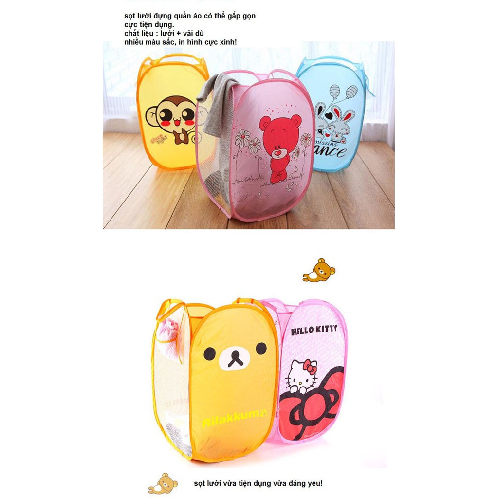 Giỏ lưới đựng đồ tự bungGiỏ lưới đựng đồ đa năng giúp bạn đựng quần áo bẩn đi giặt, đựng đồ cá nhân của mình trong phòng hoặc để đựng đồ chơi trẻ em một cách gọn gàng , tiết kiệm không gian sống cho gia đình.