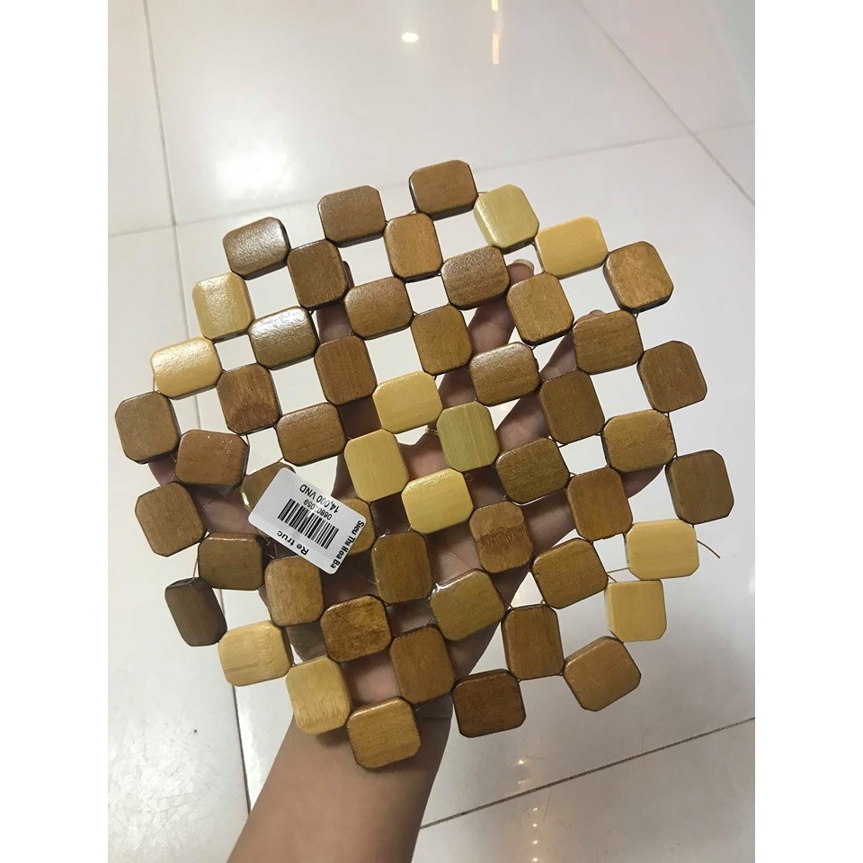 - Miếng lót nồi hạt gỗ trúc kết xinh xắn góp phần làm đẹp không gian bếp, bàn ăn.- Được gia công hoàn toàn bằng chất liệu gỗ trúc, gọn nhẹ, nhưng cứng cáp tuyệt đối.