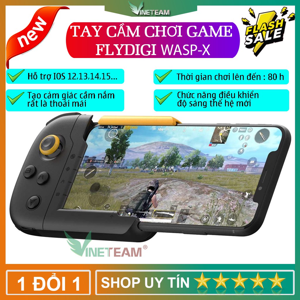 Tay Cầm Chơi Game FLYDIGI Wasp Dành Cho Điện Thoại Iphone Chơi Game Liên Quân Pubg Mobile Free Fire FortnigMới đây một loại tay cầm với thiết kế dựa trên sự thành công của các loại tay cầm tích hợp Joystick trước đây nay chính thức phá đảo giới game - FLYDIGY WASP. Điểm đặc biệt và gây chú ý đối với game thủ đó chính là khả năng chơi game Liên quân, Pubg Mobile, Free Fire, Fortnight trực tiếp từ App Store đối với thiết bị hoạt động trên hệ điều hành iOS như iPhone.