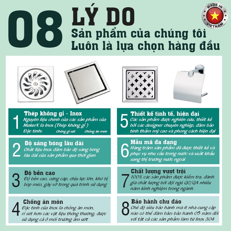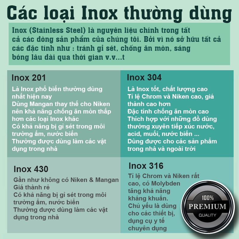 ✔️Chất liệu: Inox 304 (Thép không gỉ 304)