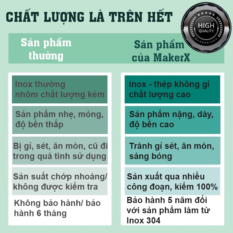 ✔️Bền đẹp, chịu lực va đập tốt, cứng cáp và bền bỉ theo thời gian, tránh được việc bể vỡ sau thời gian ngắn khi sử dụng, thép không gỉ có tính chất