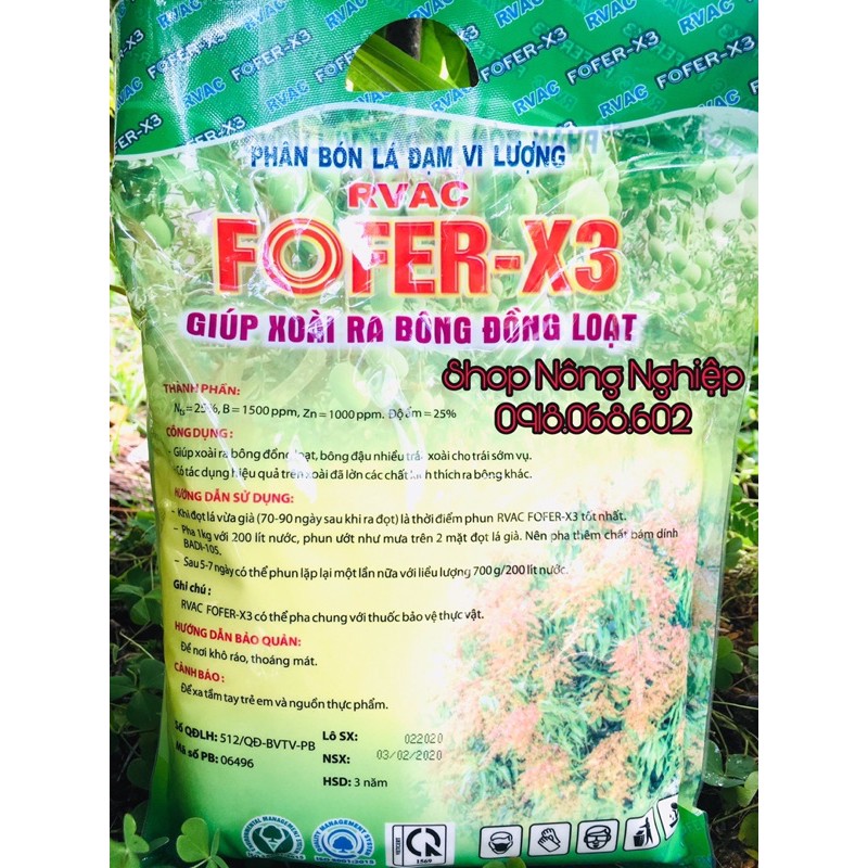FOFER-X là chế phẩm có tính năng thúc đẩy nhanh sự ra hoa đồng loạt trên cây xoài, ngoài ra còn có tác dụng thúc đẩy ra hoa đồng loạt trên chanh, mận và nhãn (có thể nói FOFER-X là chế phẩm phá miên trạng của mầm hoa). Sản phẩm rất hiệu quả trong việc giúp cây xoài ra hoa đồng loạt, sớm vụ, phát hoa đậu nhiều trái. FOFER-X có tác dụng tốt trên các giống xoài, như xoài Cát Hòa Lộc, Cát Chu, Thanh Ca, Hòn, Ấn độ, Úc, Đài Loan, Xoài Keo…