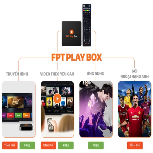 - FPT Play Box có 150 kênh truyền hình cơ bản miễn phí cho mọi khách hàng sử dụng thiết bị. Sản phẩm còn có các gói kênh truyền hình mở rộng như gói kênh HBO, Gói Kênh K+, Gói kênh Quốc Tế…
