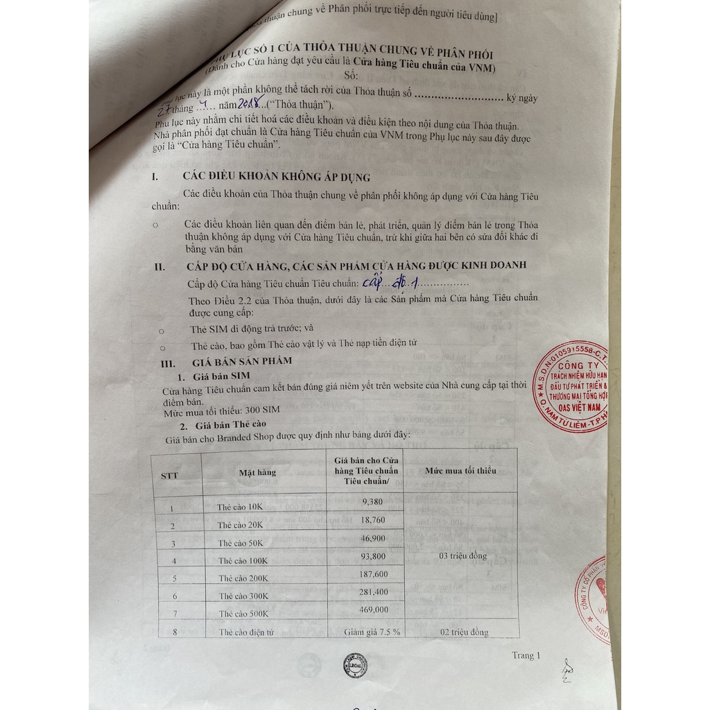 ( Có hợp đồng đi kèm) các sản phẩm dịch vụ viễn thông của Vietnamobile.