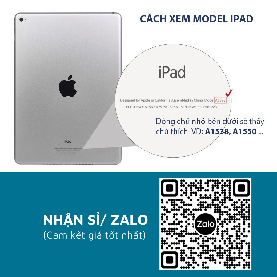 Bước 1: Lật mặt sau của ipad, ở vỏ iPad sẽ thấy chú thích VD:A1538,A1550 ... (Shop để ảnh hướng dẫn trên Album ảnh)