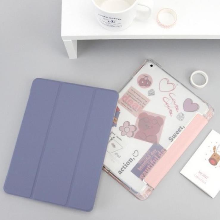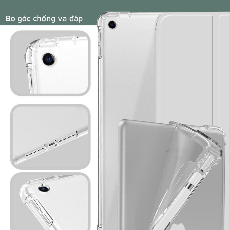 Giới thiệu [Free 50 Sticker] Bao Da iPad Có Khay Giữ Bút, Mặt Lưng Silicone Trong Mờ