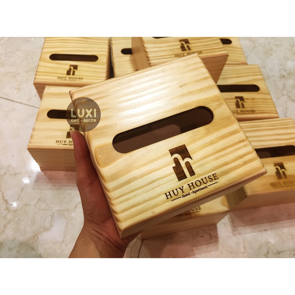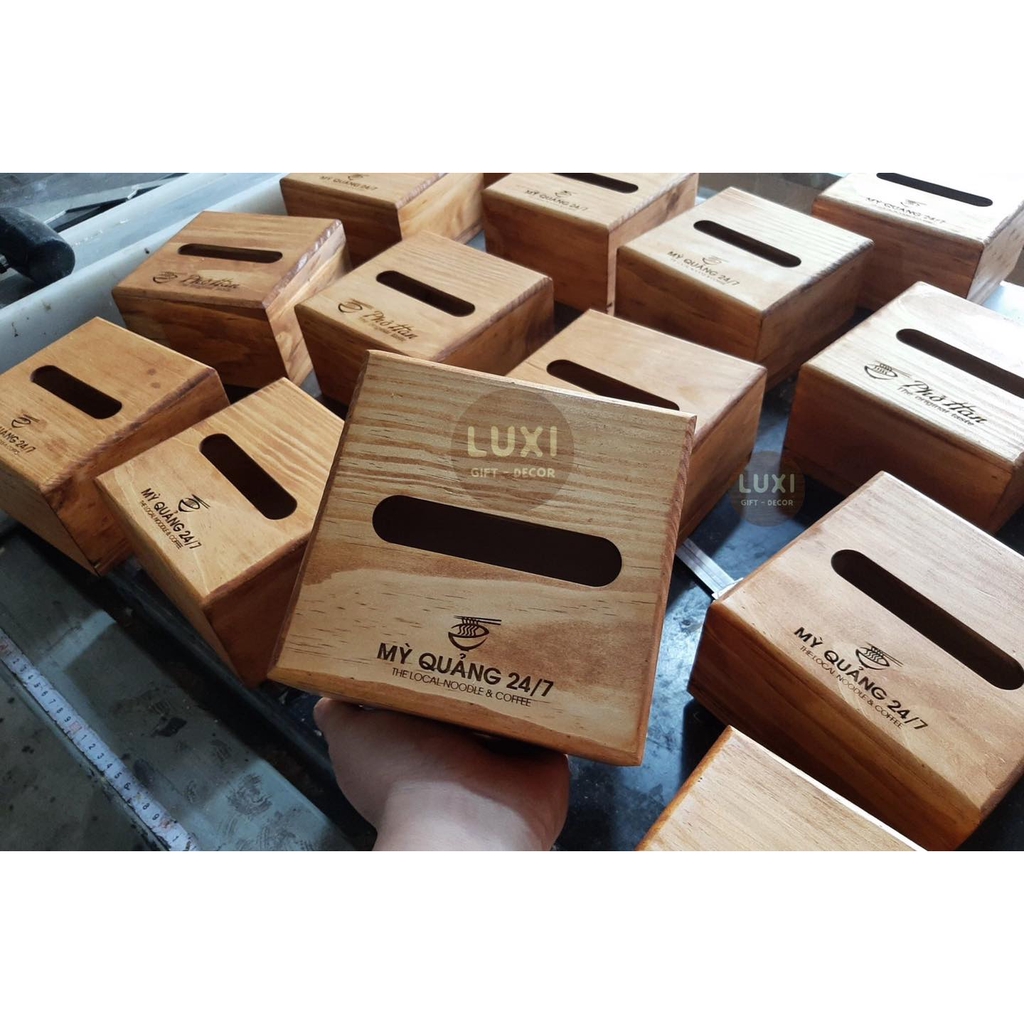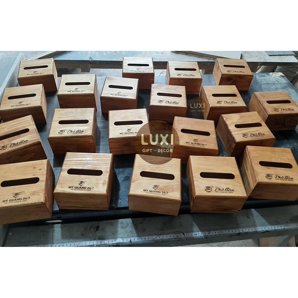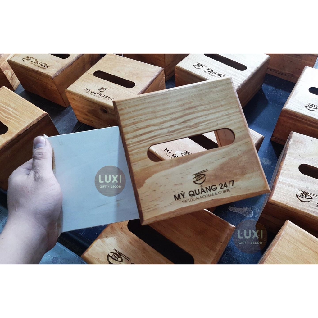 Nhà cửa & Đời sống > Sắp xếp nhà cửa > Hộp khăn giấy || [FREE KHẮC LOGO] Hộp giấy ăn chất liệu gỗ in tên thương hiệu LUXI decorCòn hàng