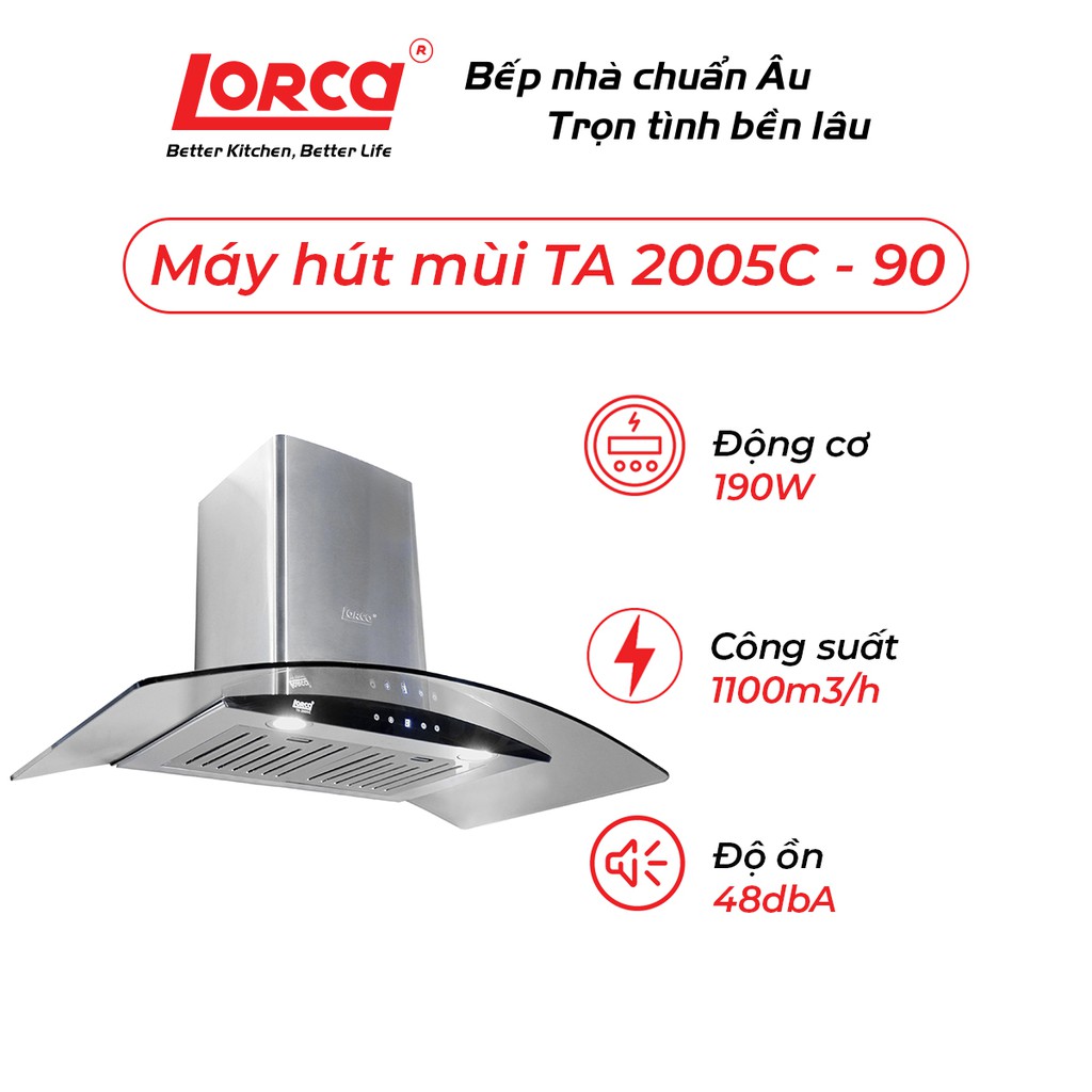 📘 Mô tả sản phẩm: [Free Lắp đặt tại Hà Nội và HCM] Máy hút mùi Châu Âu Lorca TA 2005C- KT 90cm- BH 3 năm