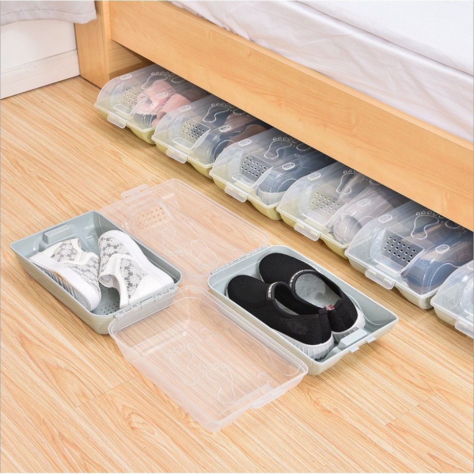 Hộp đựng giày trong suốt tiện dụng giúp bạn cất giày dép gọn gàng, ngăn nắp và khoa học.