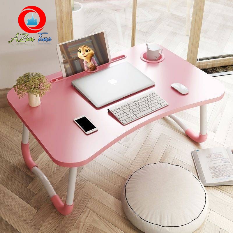 Giới thiệu [FREE SHIP] Bàn học gấp gọn cao cấp, có khe cắm ipad và chỗ để cốc nước thông minh