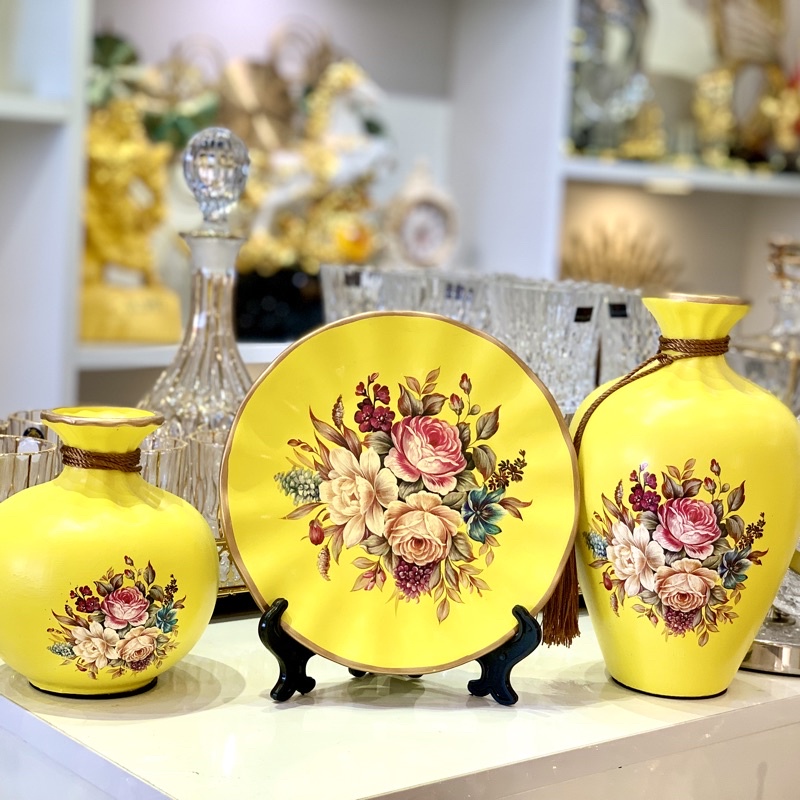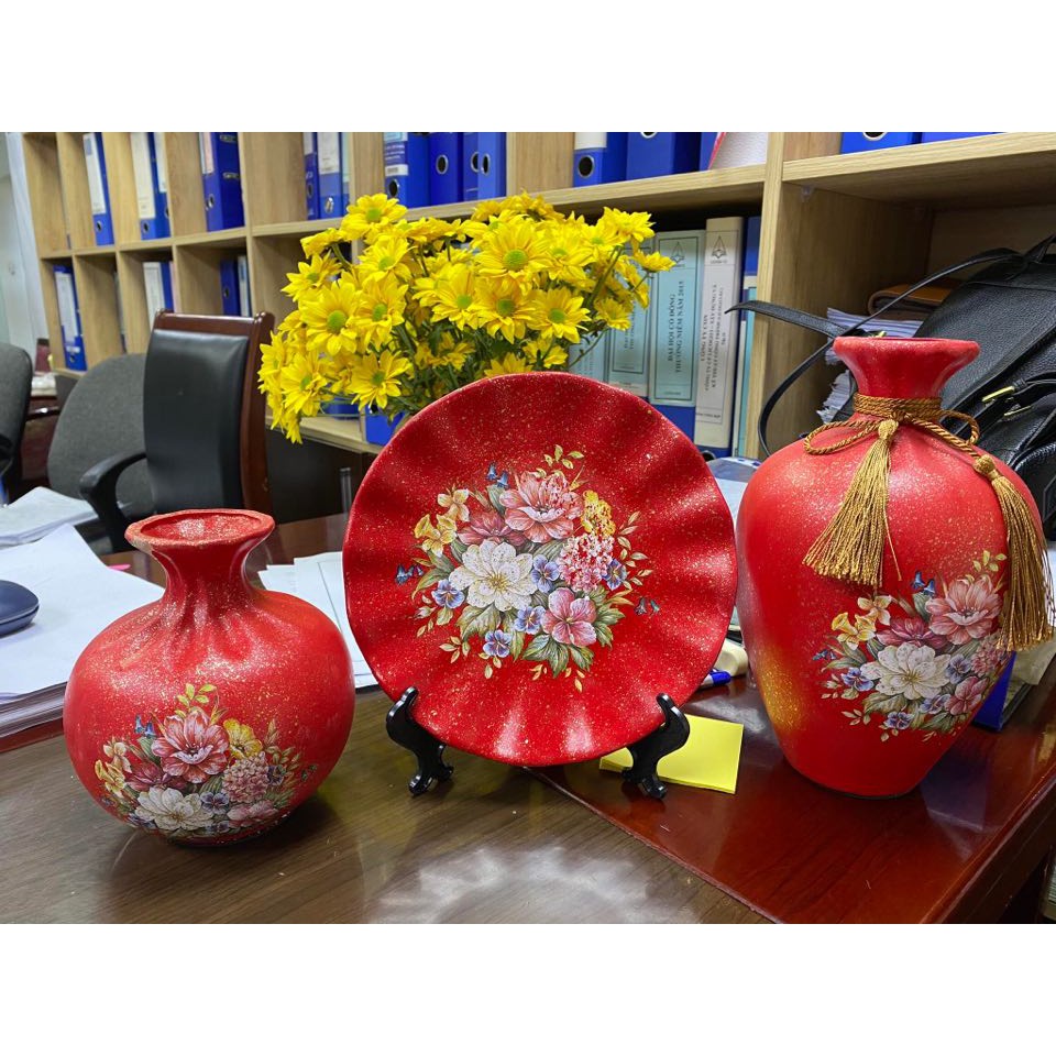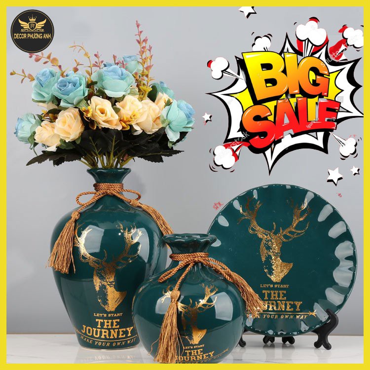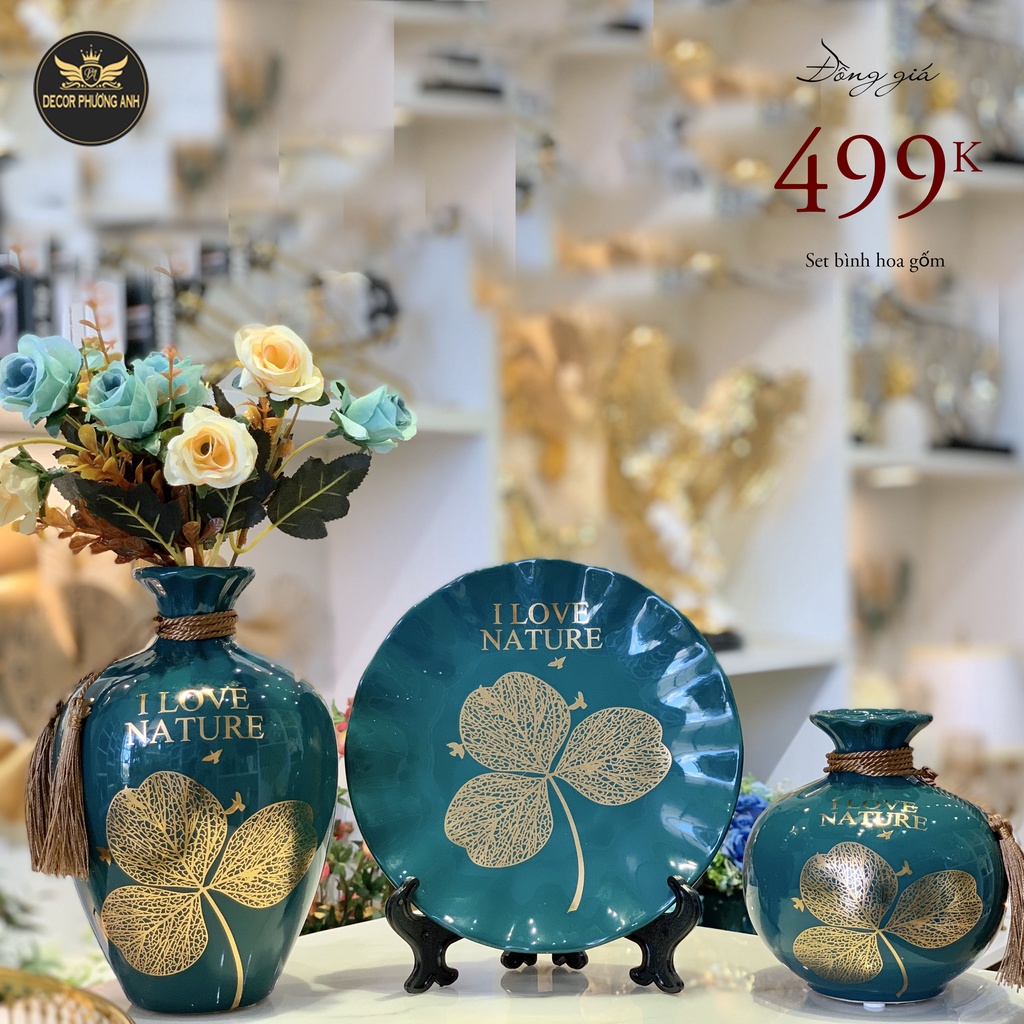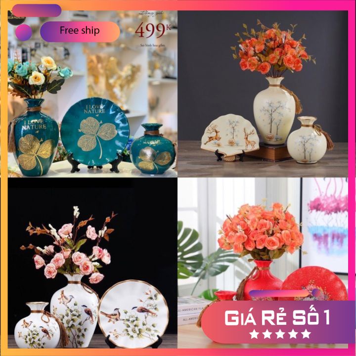 Nhà cửa & Đời sống > Trang trí nhà cửa > Bình trang trí || ❤️ FREE SHIP ❤️ Bình hoa gốm - lọ hoa 3 món, bình công phong thuỷ hút lộc trang trí nhà - kệ ti vi (tặng hoa + giá đĩa)Còn hàng
