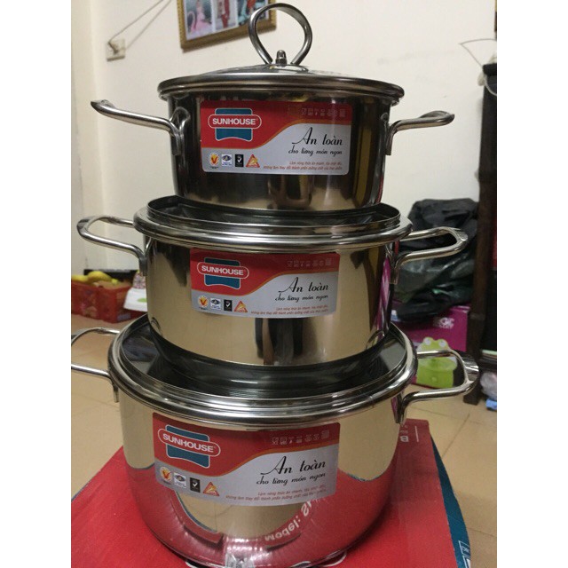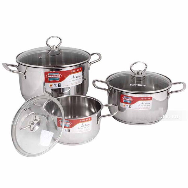 Nhà cửa & Đời sống > Dụng cụ nhà bếp > Nồi || [Free Ship] Bộ Nồi Inox 3 Đáy Sunhouse SH888 Siêu DàyCòn hàng