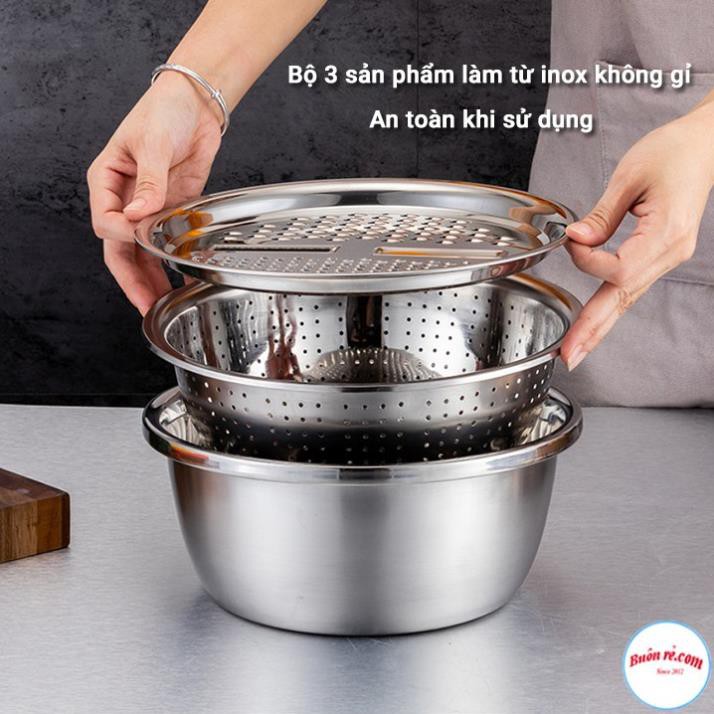 Nhà cửa & Đời sống > Dụng cụ chăm sóc nhà cửa > Chậu, xô & gáo nước || [FREE SHIP ⚡] Bộ rổ, chậu kèm nạo rau củ quả inox 3in1 cao cấp siêu tiện dụngCòn hàng